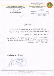 موريتانيا:لجنة الأهلة تدعو لتحري هلال رمضان مساء الأربعاء