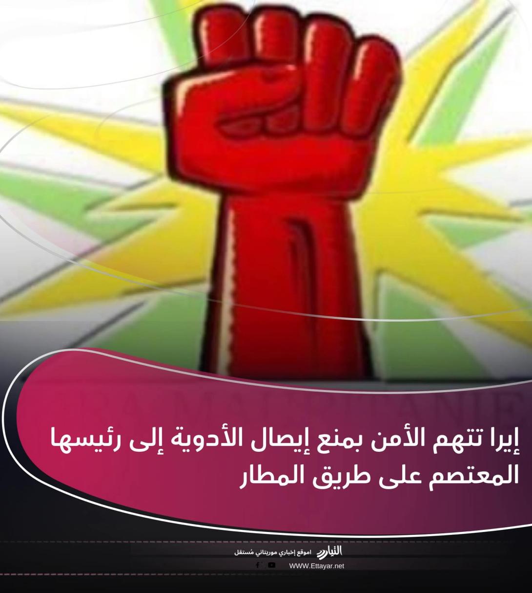 - قال مسؤول الإعلام في حركة "إيرا"، الحسن ولد امبارك، إن السلطات الأمنية منعتهم من إيصال الأدوية الخاصة بالنائب البرلماني ورئيس الحركة، بيرام الداه اعبيد، والذي يواصل اعتصاما على طريق المطار منذ مساء اليوم عقب عودته من باريس.