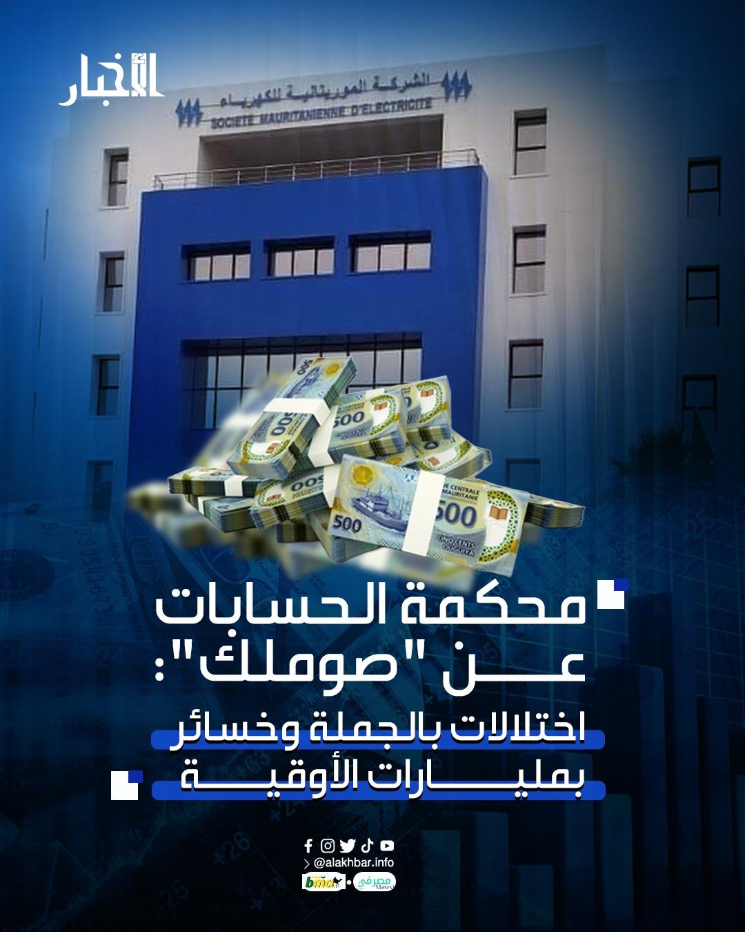 خصّصت محكمة الحسابات أحد محاور تقريرها المنشور أمس لمهمتها في الشركة الموريتانية للكهرباء "صوملك" حيث رصدت اختلالات بالجملة، وخسائر بمليارات الأوقية.