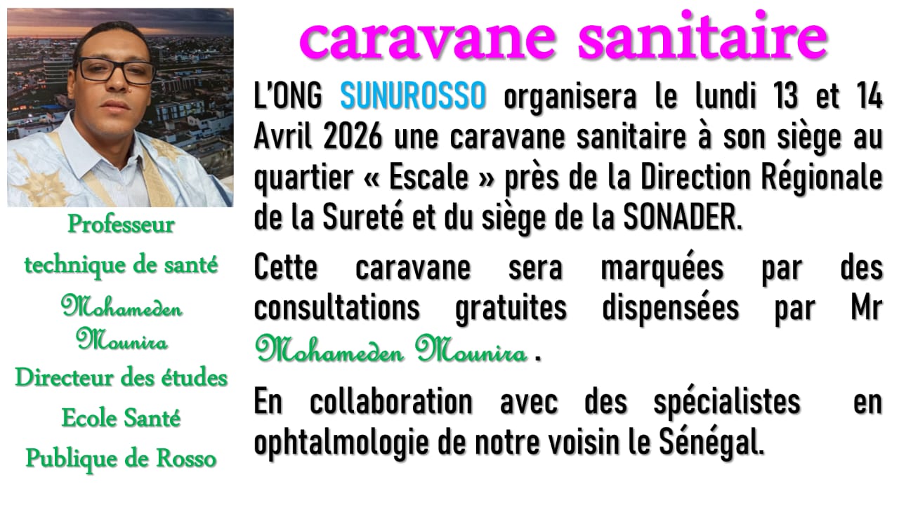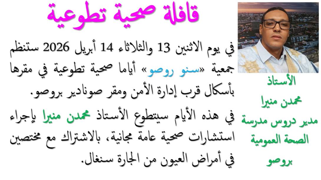 قافلة صحية تطوعية لمدة يومين بقيادة الطبيب الطيب الخلوق محمدن منيرا وذلك لإجراء معاينات متعددة في اختصاصات طبية متنوعة.