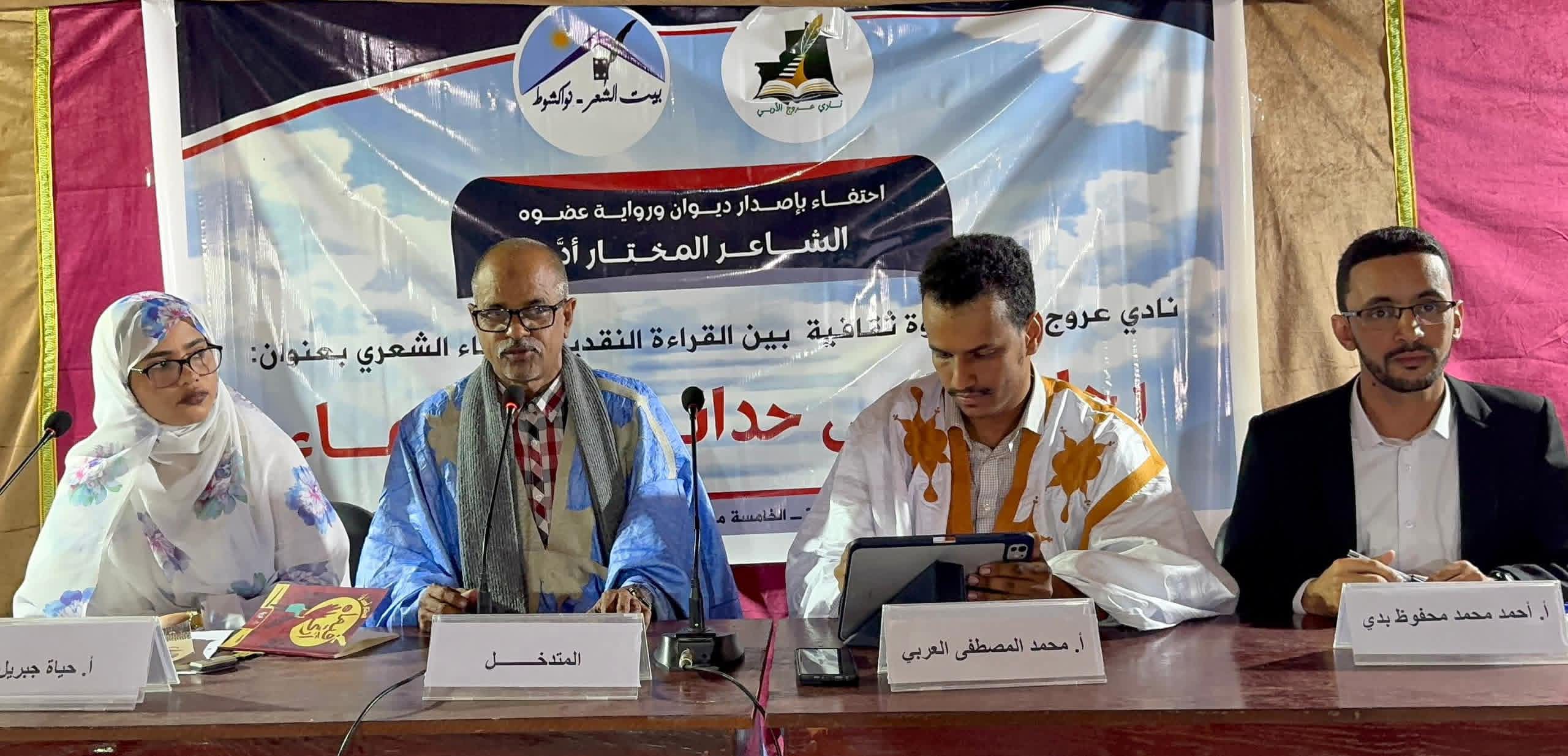 احتضن بيت الشعر-نواكشوط مساء السبت 18 أبريل 2026، نشاطا ثقافياً نظمه نادي عروج الأدبي، احتفاءً بصدور المولودين الأدبيين الجديدين لعضو النادي الشاعر والروائي المميز الأستاذ المختار ولد أحمد ولد أد ، والمتمثلين في ديوان شعري بعنوان "فيما أرى" ورواية بعنوان " ما وراء السنين"، وقد أدار الأمسية الشاعر محمد المصطفى العربي وسط حضور نخبوي من المثقفين والشباب المبدعين.