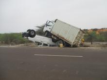 على طريق روصو انواكشوط قرب قرية لبيرد بعد 34 كلم من روصو وقع حادث غريب تلاحظون من خلال الصورةركوب شاحنة صغيرة فوق سيارةهايلكس والسبب أن الثانية كانت تجر الأولى المتعطلة،وفي هذا الحادث لم يصب الركاب بأية أضرار ومن بين الركاب من اجرينا معه حديثا عن الحادث سنتجدونه في المرئيات ف