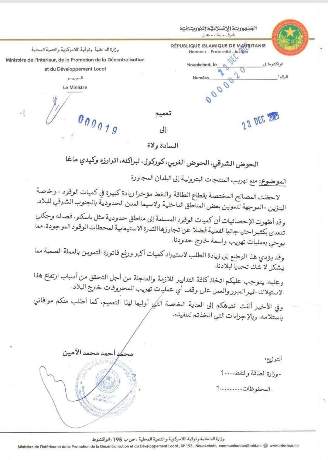 Dec 23 / التعليقات وزارة الداخلية: تصدر تعميما بمنع تهريب الوقود، خاصة البنزين إلى دول الجوار. وجه وزير الداخلية تعميمًا لولاة عدة ولايات حدودية لاتخاذ إجراءات عاجلة للحد من تهريب الوقود، خاصة البنزين.• جاء ذلك بعد ملاحظة ارتفاع غير مبرر في كميات الوقود الموجهة لمناطق حدودية معينة، مما يثير شبهات تهريب واسع خارج البلاد. ثلاثاء, 2025/12/23 - 19:48