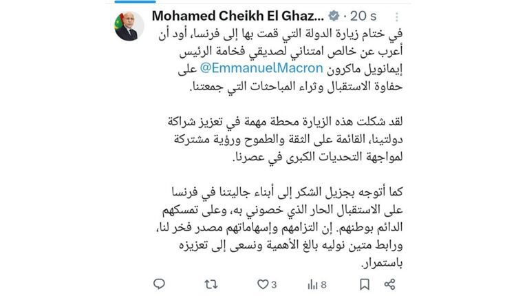 غزواني يعود لنواكشوط بعد زيارة دولة لفرنسا