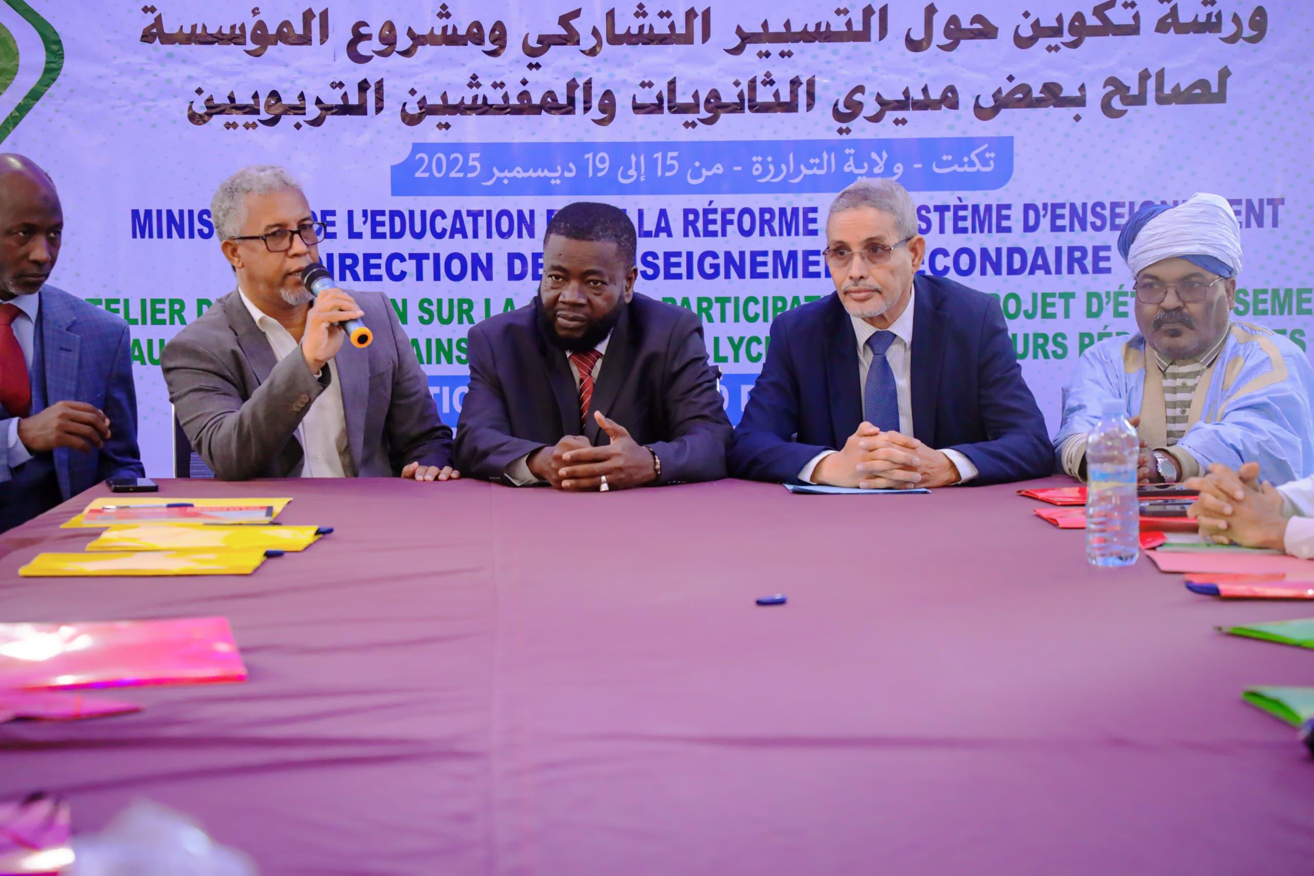 انطلقت امس الاثنين 15 ديسمبر 2025 بمدينة تكنت بولاية اترارزة أعمال ورشة تكوينية، تنظمها وزارة التربية وإصلاح النظام التعليمي، لصالح بعض مديري الثانويات والمفتشين التربويين حول "التسيير التشاركي ومشروع المؤسسة".