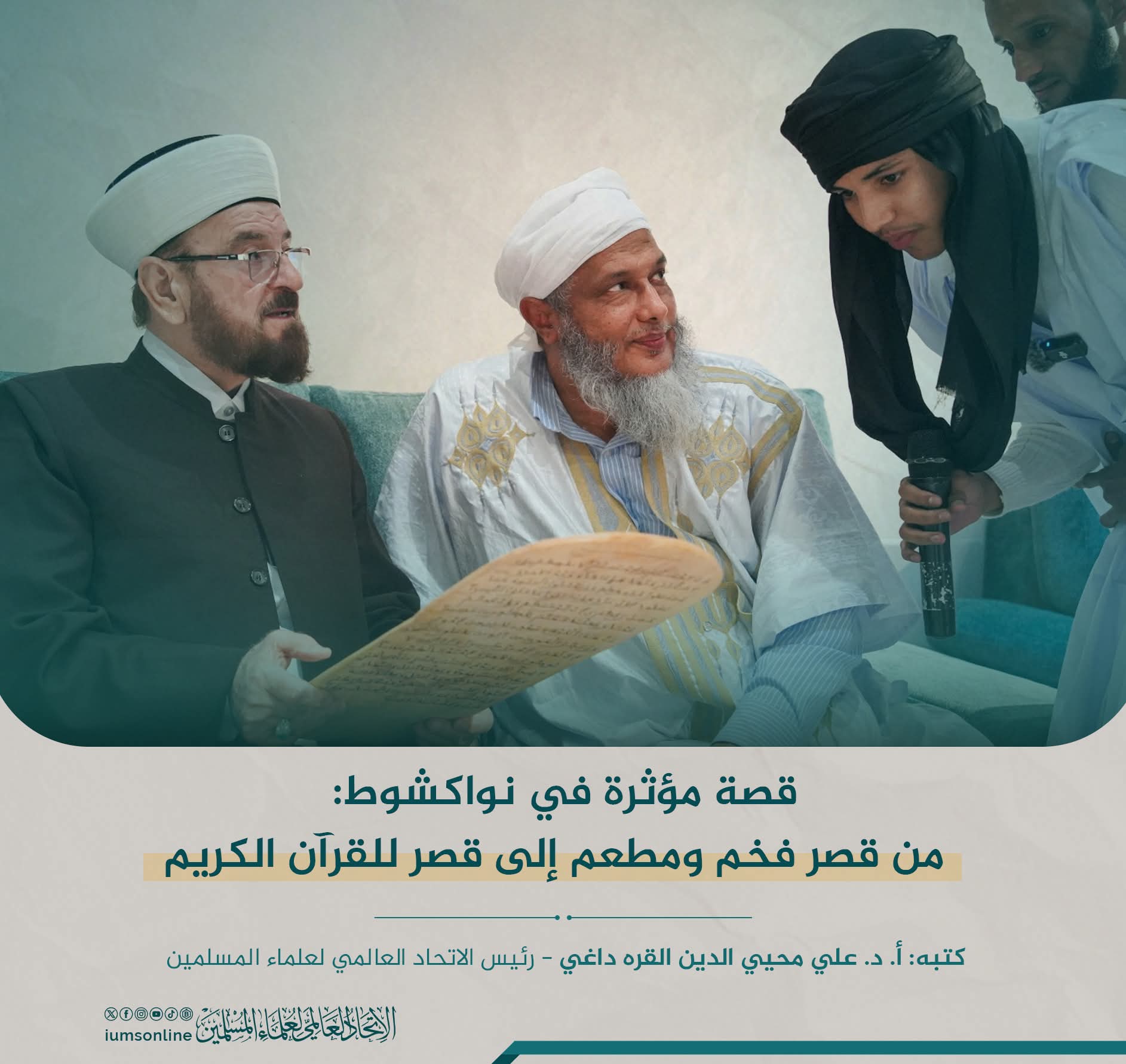 في نهاية زيارة رئيس الإتحاد العالمي لعلماء المسلمين الدكتور علي محي الدين القرة داغي لنواكشوط تلبية لدعوة من نائبه العلامة محمد الحسن ولد الددو ومحظرة خير الورى كتب التالي :