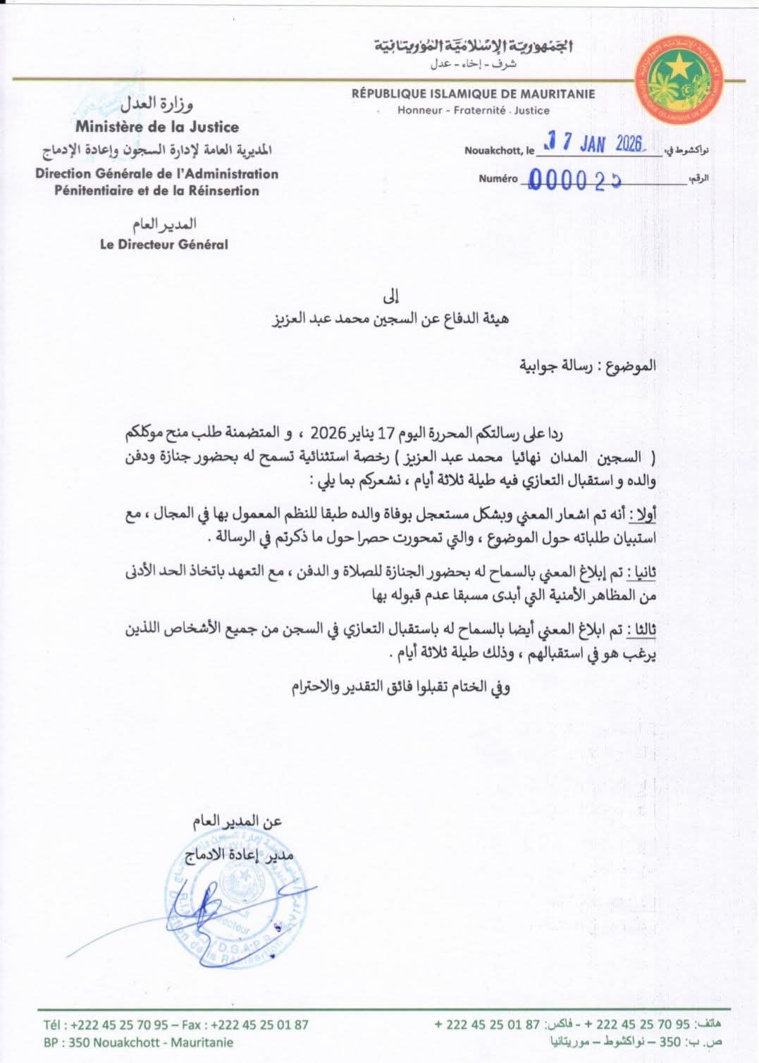 أسرة فضيلة العلامة ولد فتى تشكر المعزين فيه